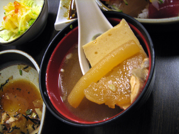 這裡的味增湯,料超多,佔了一碗的1/2有吧,讓吃飽的你會更有要撐死的感覺阿XD...