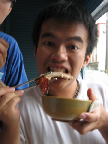 (A魔正.看他這麼猙獰的表情就知道這紅燒翅膀有多好吃了~)